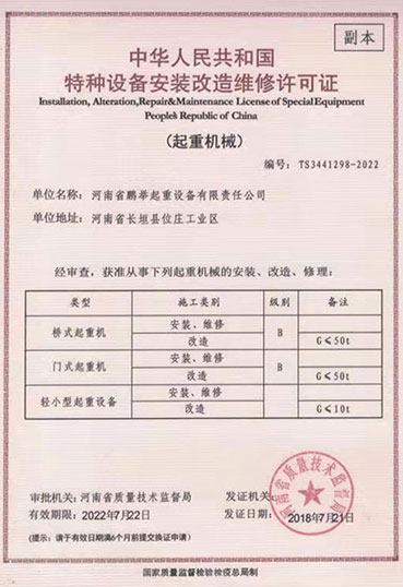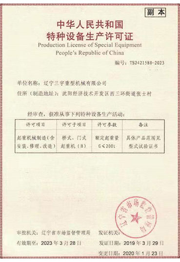 - 公司主要產(chǎn)品有單、雙梁橋門式起重機、冶金起重機、架橋機、懸臂吊、電動葫蘆、隱爆系列起重機等多項品種。廣泛應用于機械、冶金、電力、鐵路、水利、港口等多種行業(yè)。在東北三省及內(nèi)蒙古自治區(qū)建有營銷、服務經(jīng)營網(wǎng)點。